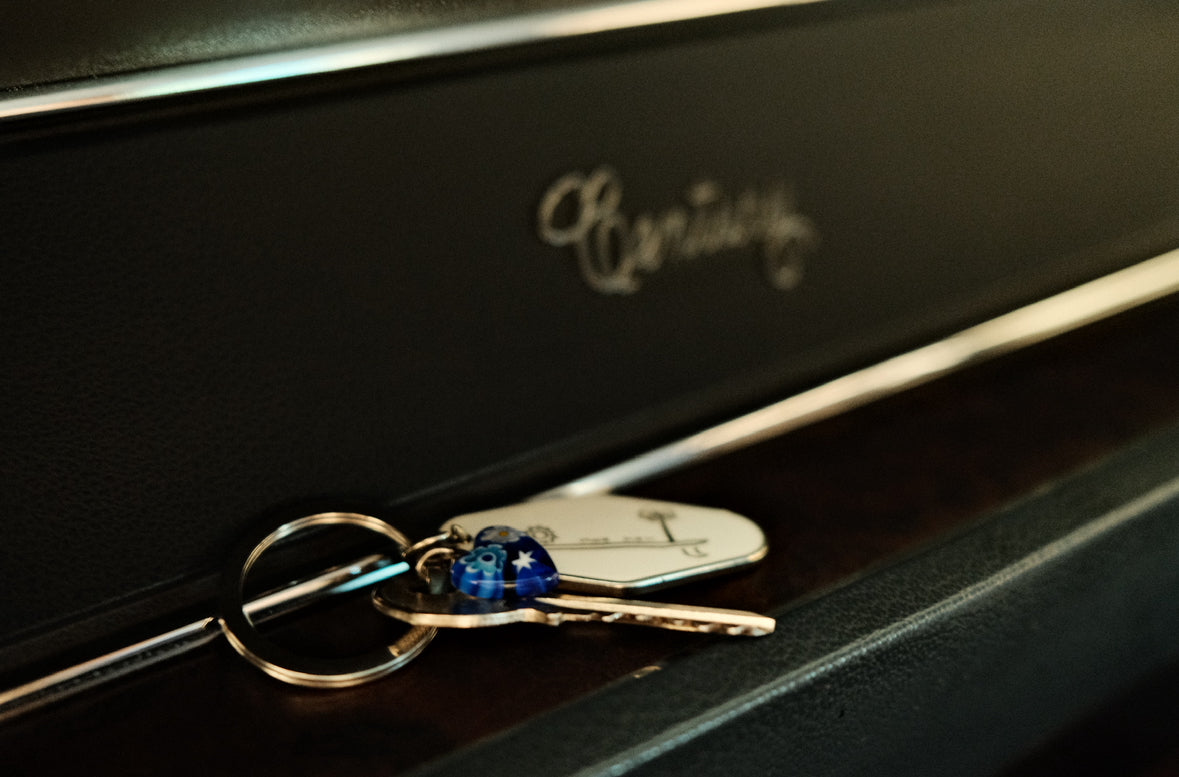 a white metal keychain featuring a silver-embossed surfer and the phrase “Sea Ya”
