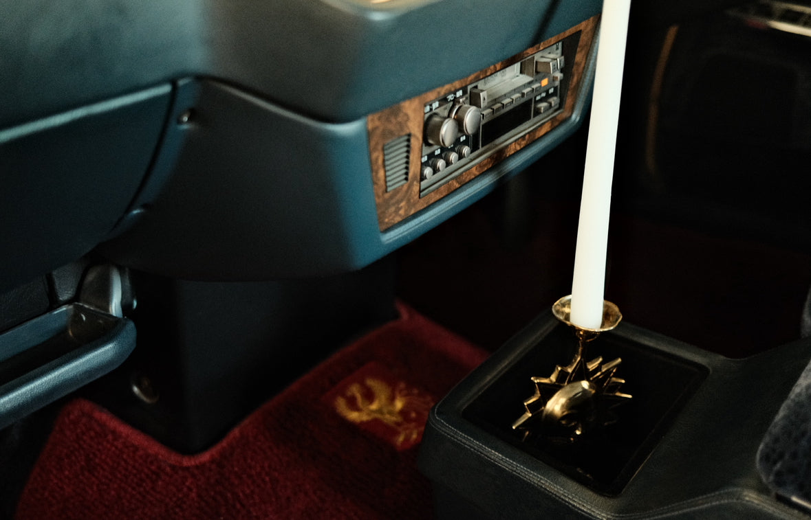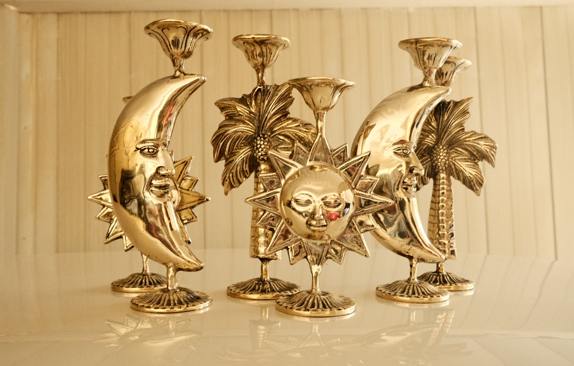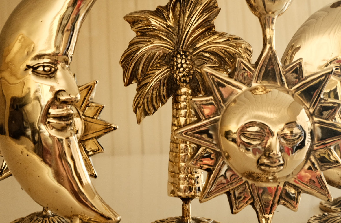 brass celestial candle holder measuring 9.9 cm in width, 19.8 cm in height, and 2.8 cm in depth